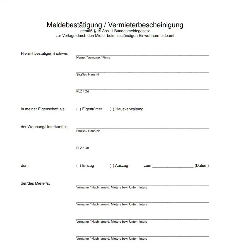 Meldebestätigung / Vermieterbescheinigung zum downloaden
